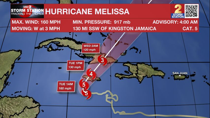 Melissa is moving slowly west near 3 mph but is expected to turn toward the northwest and north within the next 24 hours. The National Hurricane Center forecasts the hurricane to make landfall on Jamaica’s south coast Tuesday morning, crossing the island before emerging north by afternoon.